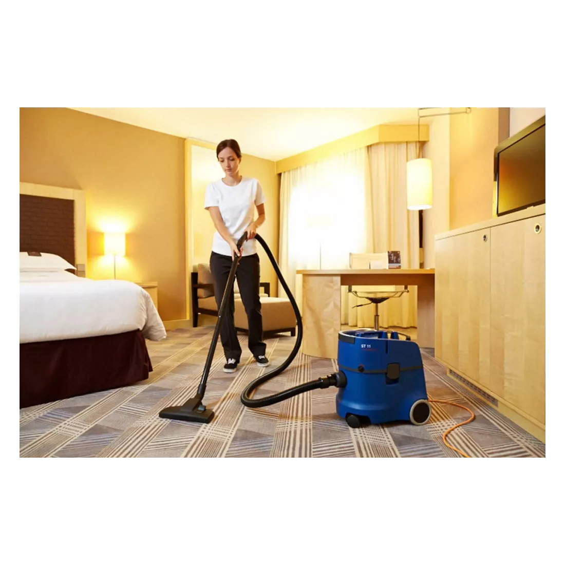 Je to jednoduchý, výkonný a spolehlivý průmyslový vysavač s velmi nízkými provozními náklady. Vybavený jednostupňovou turbínou s dlouhou životností. Je určený ke každodennímu vysávání suchých nečistot například v kancelářích a hotelech. Kovové trubky potažené plastem a kvalitní podlahová hubice s výsuvnými kartáčky je optimálním řešením pro již zmíněné používání.