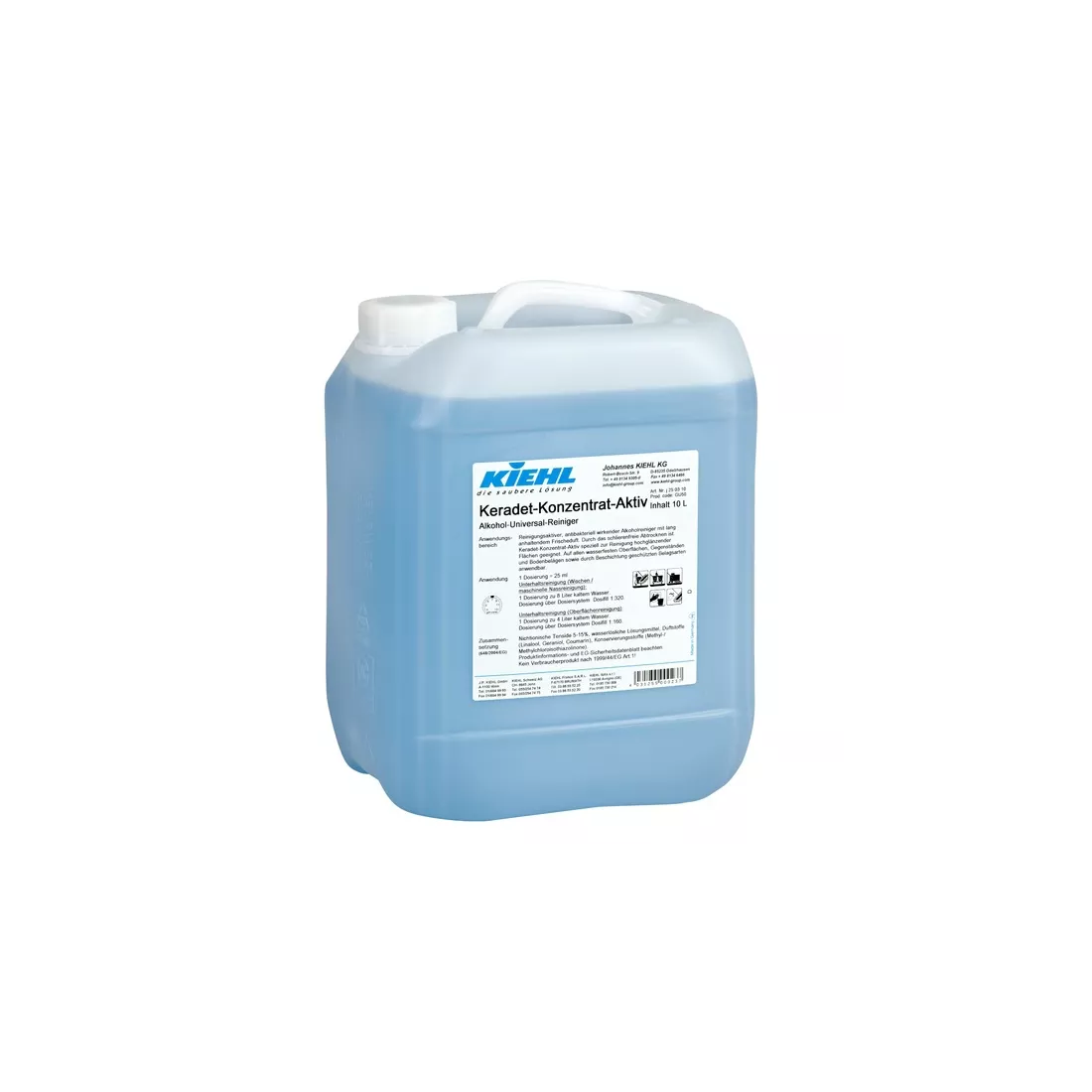 Keradet Koncentrát Aktiv v balení 10 L je profesionální alkoholový univerzální čistič určený pro každodenní údržbu vodě odolných povrchů, předmětů a podlahovin včetně povrchů s ochranným nátěrem. Díky obsahu izopropanolu a neionogenních tenzidů 5–15 % rychle odstraňuje mastné a mechanické znečištění, zasychá beze šmouh a zanechává povrch viditelně lesklý. Kanystr je kompatibilní s dávkovacími pumpami Kiehl pro přesné a bezprašné odměřování.