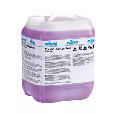 Torvan Concentrate je rychle účinný aktivní čistič s nízkým obsahem tenzidů, který je určen pro každodenní údržbové čištění vodovzdorných povrchů, předmětů a podlah — včetně povrchově ošetřených podlahových krytin. Díky velmi dobrým odlučovacím vlastnostem v odpadních vodách se snadno zpracovává v běžných čistírnách. Produkt je kompatibilní s mnoha dezinfekčními prostředky a lze ho použít i jako intenzivní čistič při vyšším dávkování. Nevyžaduje značení dle nařízení CLP.