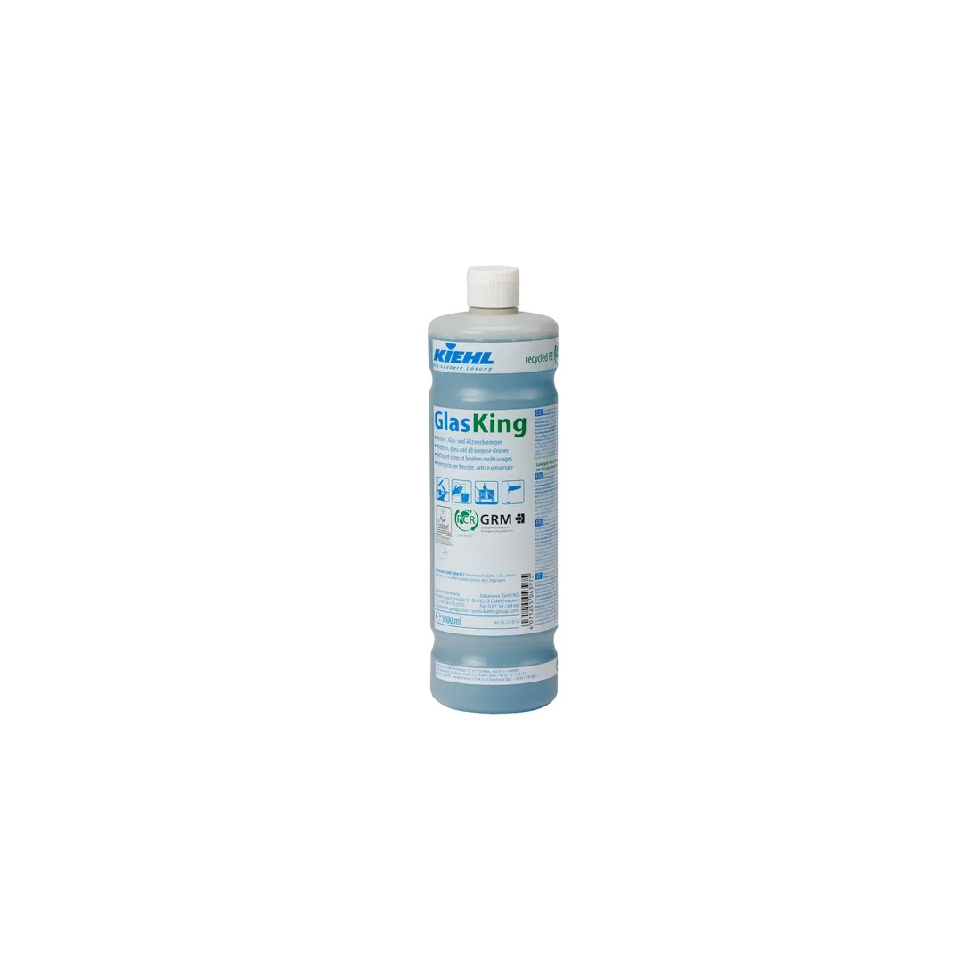 GlasKing je mírně alkalický koncentrovaný čistič s certifikátem EU Ecolabel pro okna, sklo, akrylové sklo a kovové i plastové rámy. Okamžitě odstraňuje všechny druhy nečistot, usychá bezešvě a nabízí výjimečný klouzavý efekt pro stěrku. Tenzidy na bázi obnovitelných rostlinných surovin. Lahve z recyklovaného PCR materiálu. Zapsán na listině GRM pro čištění fasád. Pro mrazové podmínky lze kombinovat s přípravkem ClearScreen -55 °C.
