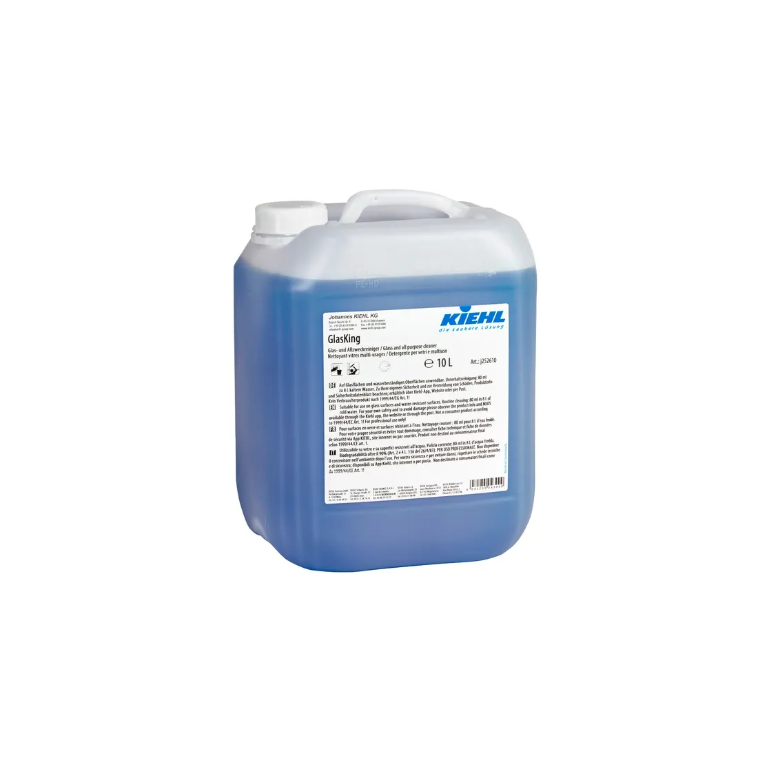 GlasKing je mírně alkalický koncentrovaný čistič s certifikátem EU Ecolabel pro okna, sklo, akrylové sklo a kovové i plastové rámy. Okamžitě odstraňuje všechny druhy nečistot, usychá bezešvě a nabízí výjimečný klouzavý efekt pro stěrku. Tenzidy na bázi obnovitelných rostlinných surovin. Lahve z recyklovaného PCR materiálu. Zapsán na listině GRM pro čištění fasád. Pro mrazové podmínky lze kombinovat s přípravkem ClearScreen -55 °C.