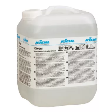 Rivas je beztenzidový intenzivní čistič s EU Ecolabel určený pro každodenní i hloubkový údržbový úklid vodě odolných podlah, povrchů a předmětů. Unikátní anorganické složení bez tenzidů, kyselin, enzymů a fosfátů zajišťuje vysoký čisticí výkon při minimálním ekologickém dopadu. Přípravek rychle schne, takže ošetřené plochy lze ihned znovu používat. Je obzvláště vhodný pro mikropórovité podlahy, impregnovaný kámen, koberce i čalounění. Splňuje požadavky HACCP pro potravinářské provozy.