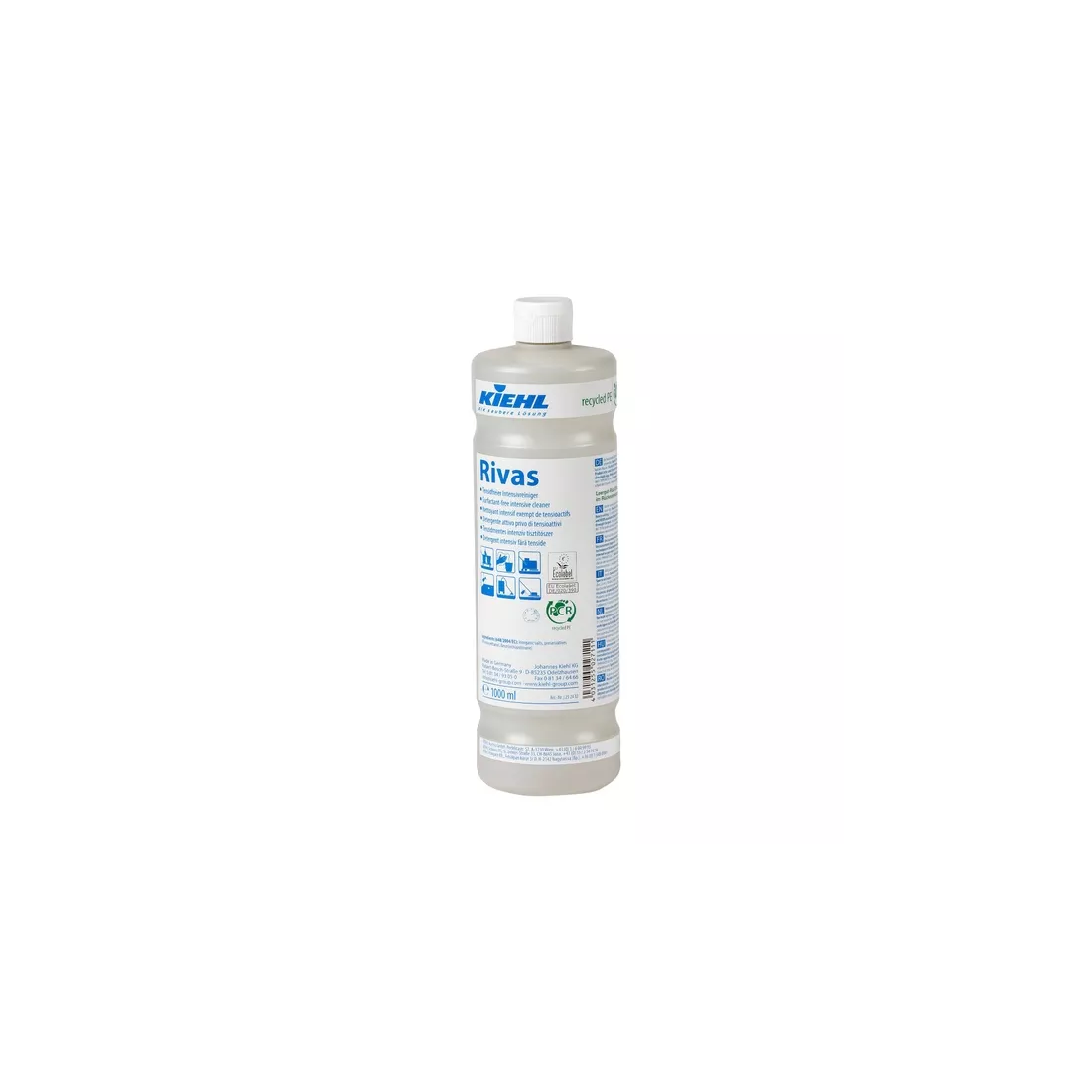 Rivas je beztenzidový intenzivní čistič s EU Ecolabel určený pro každodenní i hloubkový údržbový úklid vodě odolných podlah, povrchů a předmětů. Unikátní anorganické složení bez tenzidů, kyselin, enzymů a fosfátů zajišťuje vysoký čisticí výkon při minimálním ekologickém dopadu. Přípravek rychle schne, takže ošetřené plochy lze ihned znovu používat. Je obzvláště vhodný pro mikropórovité podlahy, impregnovaný kámen, koberce i čalounění. Splňuje požadavky HACCP pro potravinářské provozy.