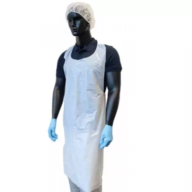 Jednorázová zástěra, bílá, LDPE, 800x1300mm, 20my, 100ks/bal