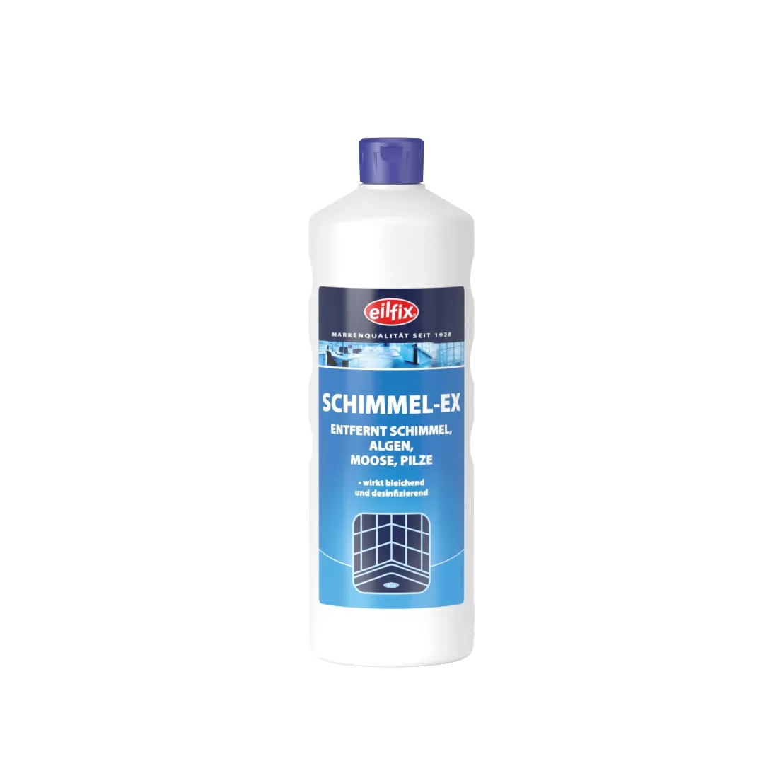 Eilfix Schimmel-Ex je intenzivní čistič na bázi chloru určený k odstraňování plísní, řas, mechů a hub z povrchů. Působí bělicím a dezinfekčním účinkem a díky hloubkové penetraci dlouhodobě chrání ošetřené plochy před novým výskytem. Vhodný pro stěny, obklady a plochy v sanitárním a kuchyňském provozu.