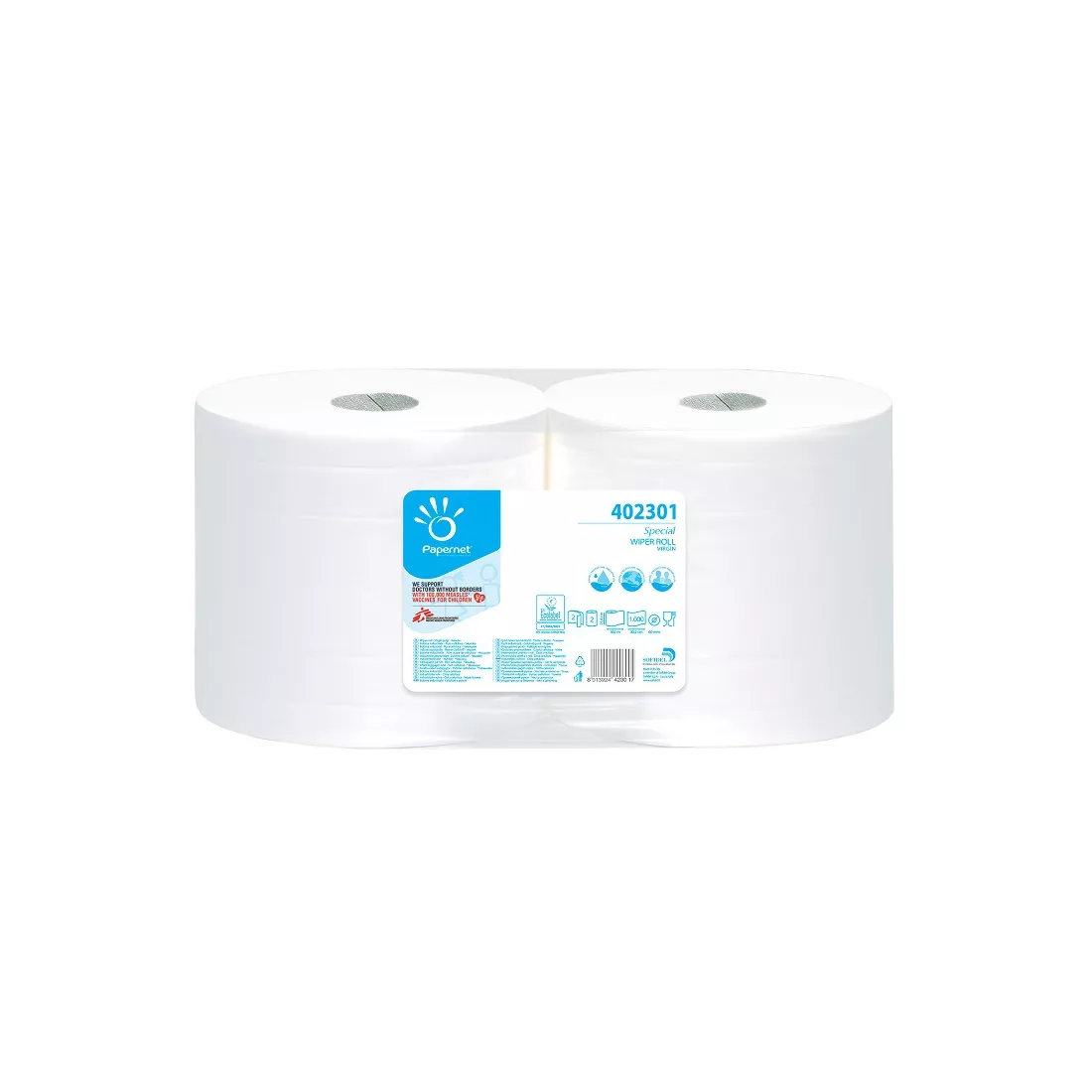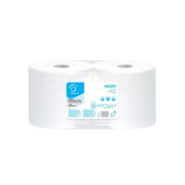 Utěrka ze 100% celulózy - 2 vrstvy. Výška role 23.5 cm - perforovaná role, průměr role 27cm, barva bílá, návin 305 m, 1000 útržků po 30,5 cm. prodej POUZE balení = 2 role !!!