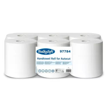 BulkySoft Classic Autocut Handtowel Roll 160 je dvouvrstvý papírový ručník v roli z bílé celulózy určený pro zásobníky autocut. Role délky 160 m s kompaktním průměrem 15,5 cm zajišťuje dlouhou životnost zásobníku i v provozech s vysokou frekvencí návštěv. Role není vybavena vestavěným adaptérem — montáž je přímá do zásobníku.