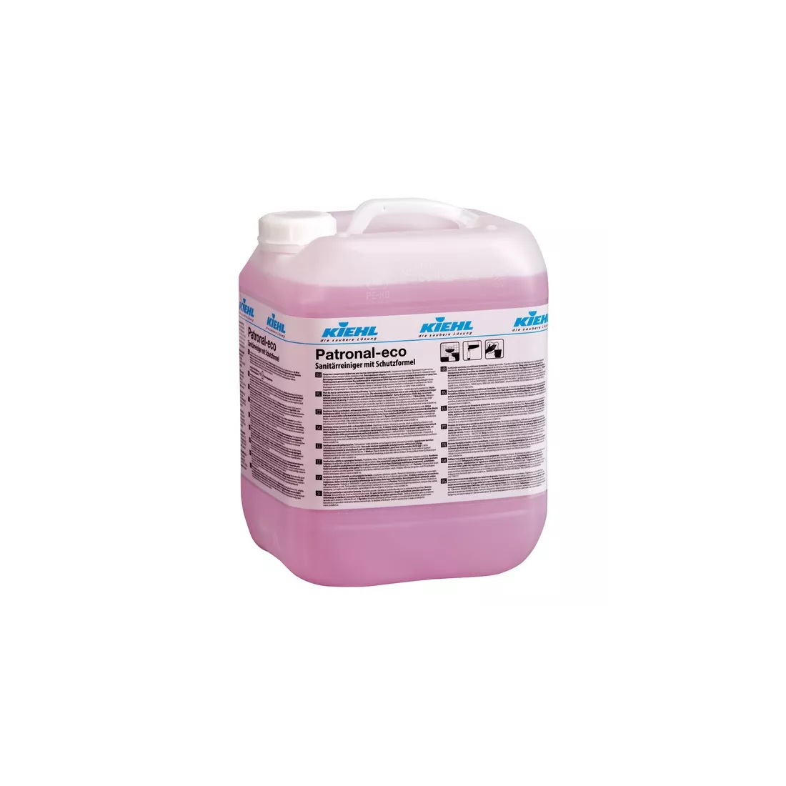 Patronal-eco je aktivní sanitární čistič s ekologicky propracovanou kyselinovou kombinací na bázi obnovitelných rostlinných surovin. Odstraňuje vodní kámen, zbytky mýdla a kosmetiky v celém mokrém prostoru. Přípravek je oceněn certifikátem EU Ecolabel a rakouskou ekoznačkou. Tenzidy splňují veškeré požadavky nařízení o detergentech 648/2004/ES. Ekonomické 10l balení je ideální pro provozovny s vysokou spotřebou.