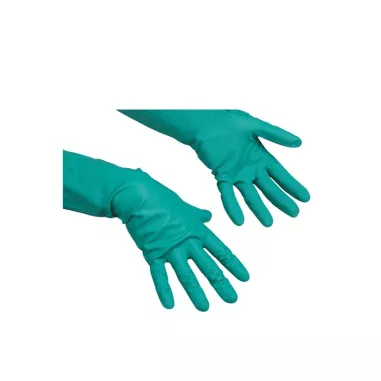 Vileda Professional Universal je profesionální nitrilová rukavice bez latexu určená pro náročný každodenní provoz. Díky bavlněné vnitřní výstelce je pohodlná při celodenním nošení a zároveň zajišťuje vysokou citlivost prstů a bezpečný úchop. Silná chemická odolnost vůči čisticím prostředkům, olejům a rozpouštědlům ji předurčuje pro úklidové práce s intenzivním chemickým zatížením. Vhodná také pro přímý kontakt s potravinami.